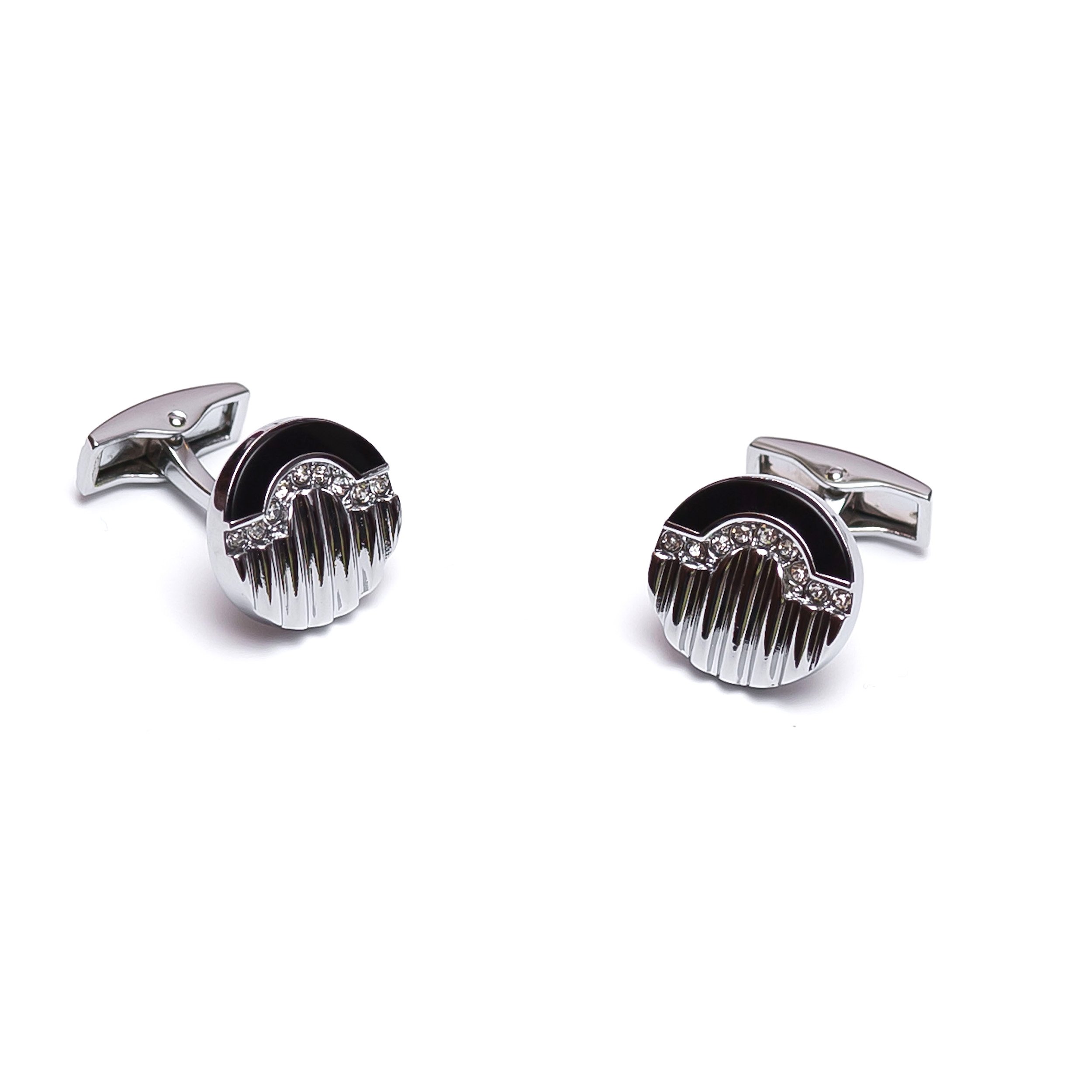 - butoni argintii- forma rotunda- sidef negru si cristale de Cehia- material – otel inoxidabil Cod produs: 61,,Butonii si implicit camasile care permit acest tip de accesorii, constituie alegerea eleganta pentru orice tip de eveniment, de la o intalnire de afaceri, pana la un dineu de gala.” - Mr. Black