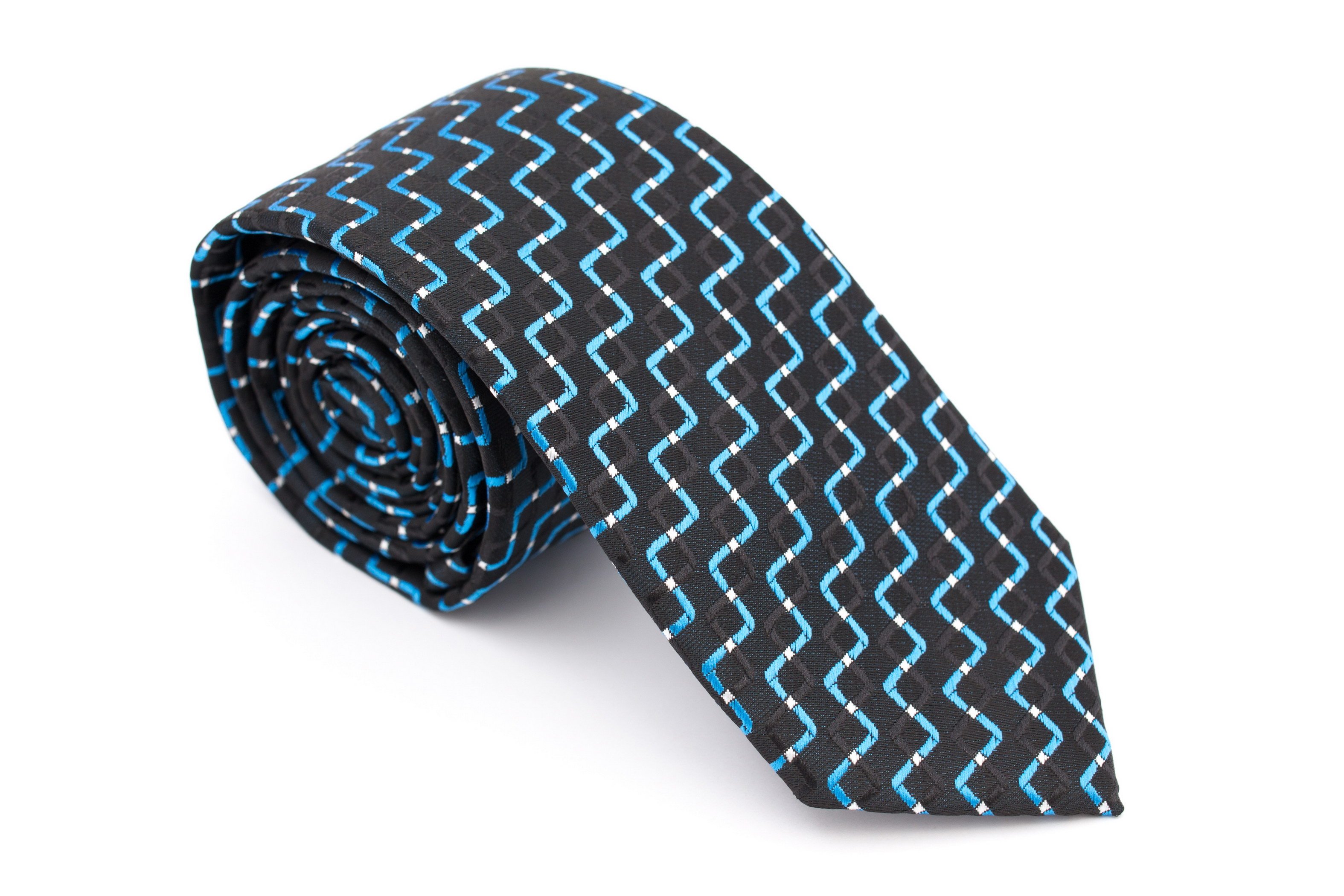Cravata slim negru cu model turcoaz Grazie Filipeti