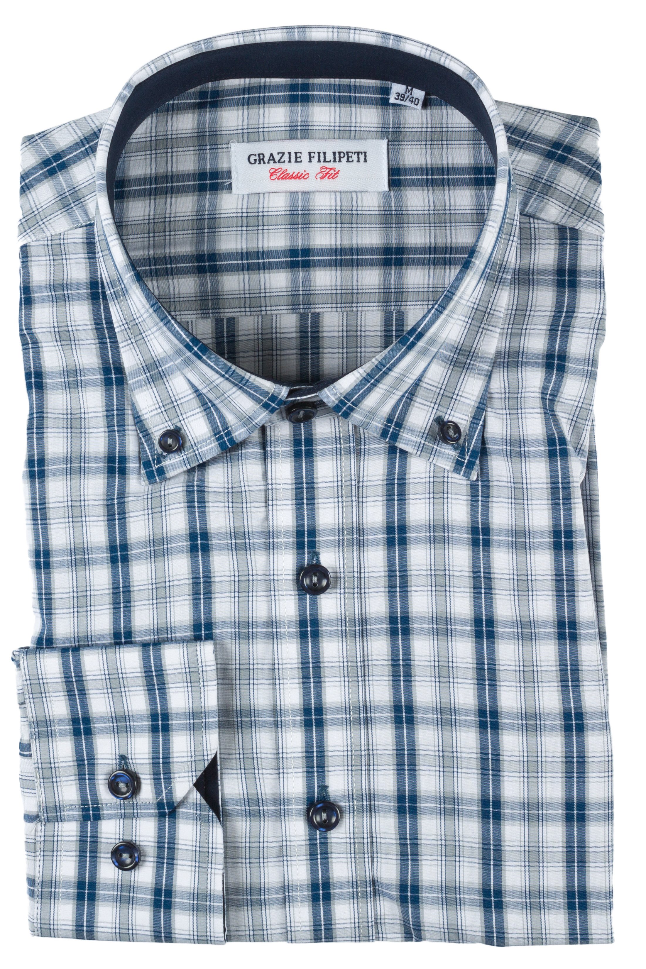 Camasa Clasic Fit cu carouri bleumarin si gri