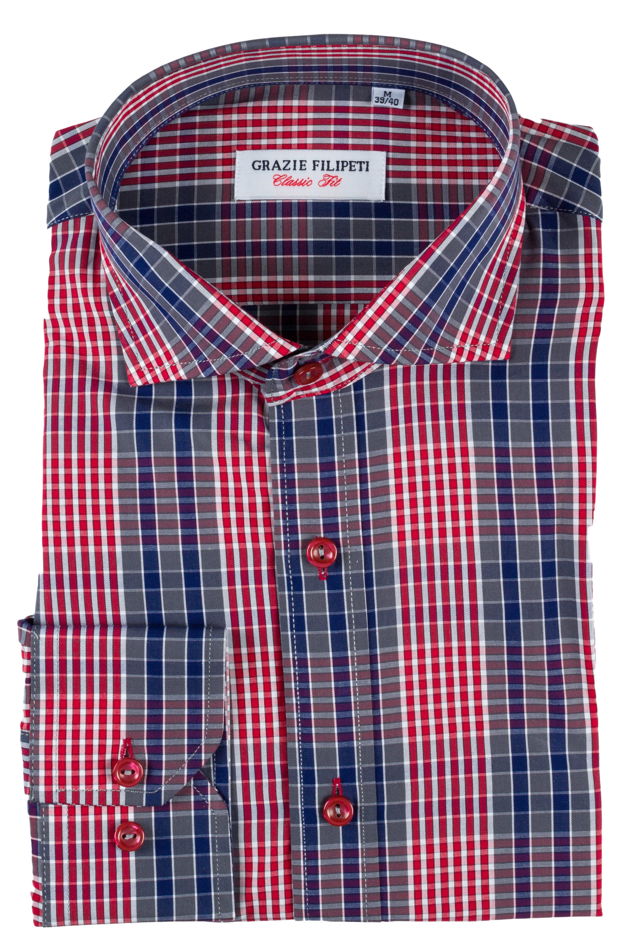 Cu carouri rosii si albastre aceasta camasa Clasic Fit se potriveste pentru orice ocazie de sezon relaxant. Confectionata dintr-un bumbac pur din doua straturi aceasta camasa are un guler cutaway si manseta simpla(nasturi).